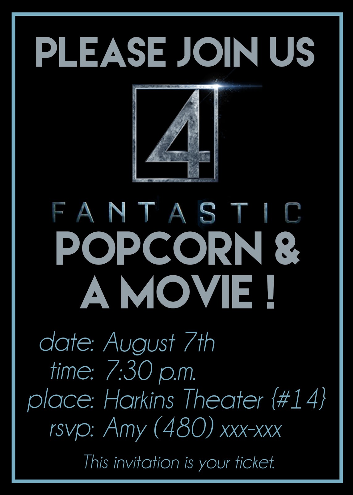 See -- it's a popcorn party as much as a movie party. Because, I mean, if you go to the trouble of making FOUR different flavors of popcorn . . . Download the blank invitation from my Drop box here. It is a 5x7 image that you can open in any photo editing program {like Photoshop, Gimp, or PicMonkey} to add all your own info. If you don't feel super tech-savvy, use a gel pen to hand-write the details on the invitations. See, I'm lookin' out for all y'all!