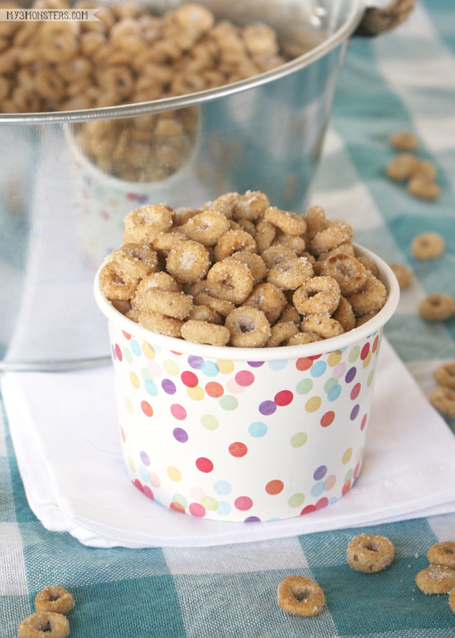 I wanted to try something a little different for an after school snack this week, so I made my kiddos some Churro Cheerios™ Snacks, or Churrios as my son called them. It's a super simple recipe that is a riff on the old Hot Buttered Cheerios™ of the 80's. I'm bringin'em back, baby! I'm not even kidding when I say these only took about 5 minutes to cook up -- and barely longer than that for the fam to scarf them down. These are so stinkin' yummy!