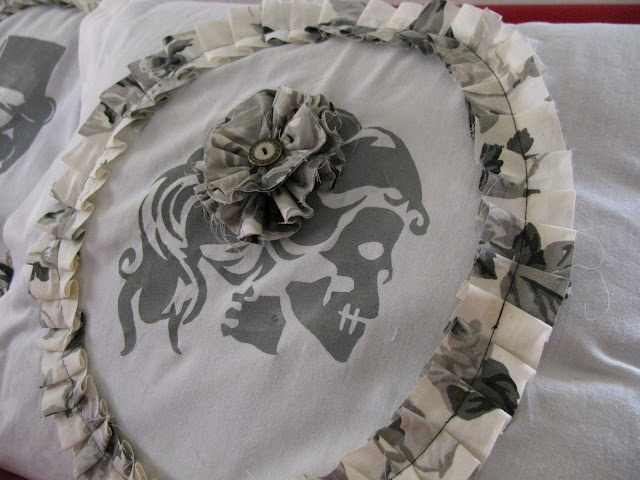 The first is a really great tutorial at Sew 4 Home, with pictures of every step. It couldn't be easier to follow. The second went to a site written in Spanish {But it is no longer available -- Boo}. I swear I've seen it in English, but couldn't find it again. There isn't a tutorial, in Spanish or otherwise, but the picture pretty much says it all -- pleat and pin, pleat and pin. However, I'm thinking now that when you sew it by hand there's really no need to pin. Just take a stitch every time you pleat. Here are my versions: