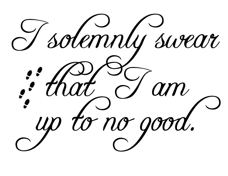 They're kinda' sad, I think. I recreated a scaled back version of the old creepy apothecary to try and up their cool factor. Meh. I am still in love with the original idea so I may try it again. Next year. One thing I do like is that half-finished pillow cover in the background of my photo. My kids and I thought it would be fun to make a Marauder's Map pillow to go along with the other Halloween pillows. {If you don't know or care about Harry Potter, you may be excused as the rest of this post will not interest you. And thanks for stopping by! But stay and keep reading if you'd like...} I quickly created the patterns and cut some freezer paper stencils. Will someone please tell my family that I need a Silhouette machine already. *sigh* Anyway, on the front it says