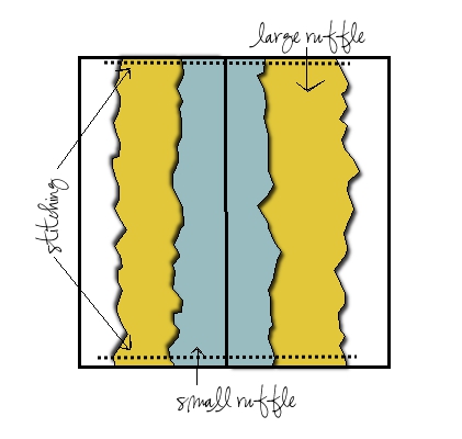 Once you have both ruffled pieces sewn onto the front of your base piece, stitch the top and bottom edges of the ruffle down to the base fabric.