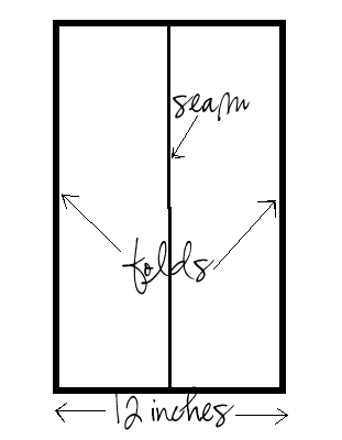 Next, take the fabric for your big ruffle, fold it in half right sides together and sew the two raw edges together with a 1/2" seam allowance. You'll be creating a long tube of fabric. Turn the tube right side out and press it flat with the seam down the center.