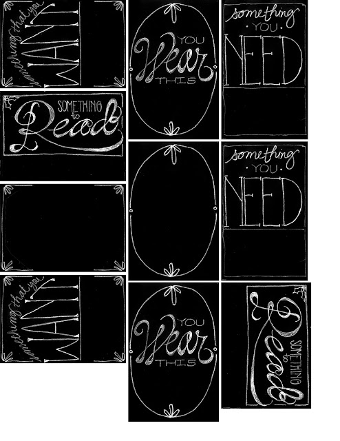 I really wanted to keep the chalkboard theme I had started with our newest ornaments and Christmas card so I sat down and drew up some designs. I followed the same process I talked about with our Christmas card design, scanning the drawings into the computer and turning them into "chalk art". Before I show you the finished product, I have to explain our gift-giving tradition.