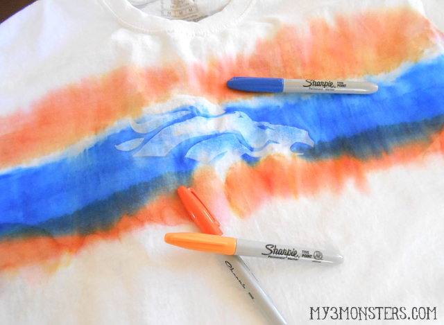 These shirts are color-safe and machine washable. Come back Monday to see how I will be using my Sharpie Tie Dyed team shirts to throw the best ever Game Day Party the whole family will enjoy!