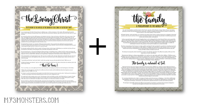 I wanted to create some Family Proclamation printables to coordinate with the others rather than be exact matches, so they'll look a little more eclectic. I have a little bit of an issue with matchy-matchy. With thirteen different options to choose from, hopefully you'll find one you like!